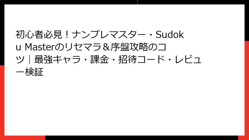 ナンプレマスター・Sudoku Master:リセマラ&最強要素完全解説!純粋パズルゲームの真髄