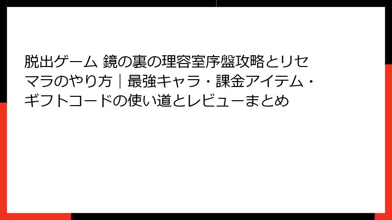 人気脱出ゲーム『鏡の裏の理容室』でリセマラは可能? 最強キャラやカードはどれ? ガチャ要素満載のソシャゲとは一線を画す本作のシステムを徹底解説! 結論から言うと、リセマラ要素は一切なし。純粋な謎解き体験が魅力のシングルプレイゲームです。この記事ではその理由と、代わりに知っておきたい「最強級アイテム」や効率プレイのコツを詳しくお届け。ネタバレ控えめで読み応え満点にまとめました!