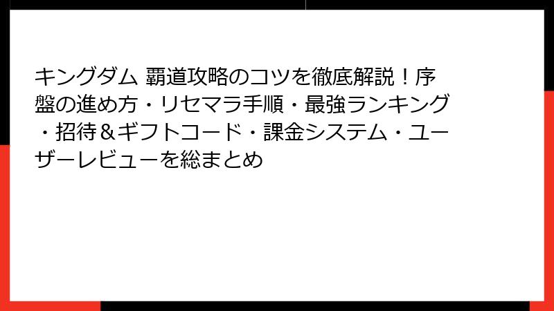 - キングダム 覇道 リセマラ&最強キャラ完全ガイド