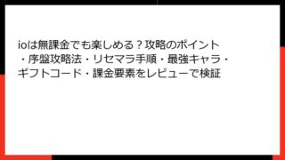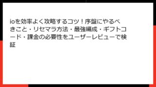 アクション io序盤攻略ポイント完全ガイド!リセマラ手順・最強キャラ・招待コード・課金要素をレビューと共に解説