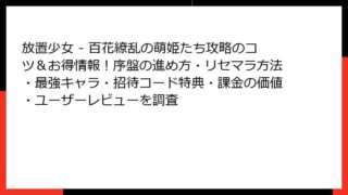 カードゲーム 放置少女 – 百花繚乱の萌姫たち攻略のコツ&お得情報!序盤の進め方・リセマラ方法・最強キャラ・招待コード特典・課金の価値・ユーザーレビューを調査