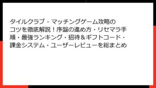 ボードゲーム タイルクラブ – マッチングゲーム攻略のコツを徹底解説!序盤の進め方・リセマラ手順・最強ランキング・招待&ギフトコード・課金システム・ユーザーレビューを総まとめ