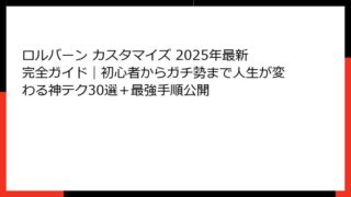 ロルバーン ロルバーン カスタマイズ 2025年最新完全ガイド|初心者からガチ勢まで人生が変わる神テク30選+最強手順公開
