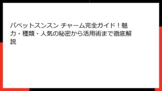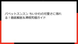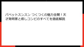 パペットスンスン ツンツンとは? 可愛さと深みの融合した魅力的な世界観を徹底解説 パペットスンスン ツンツンは、多くのファンを魅了する独特な世界観を持つコンテンツです。 この記事では、パペットスンスンの全体像から、特に「ツンツン」というキー...