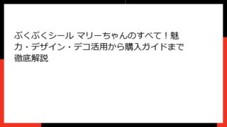 ぷくぷくシール ぷくぷくシール マリーちゃんのすべて!魅力・デザイン・デコ活用から購入ガイドまで徹底解説