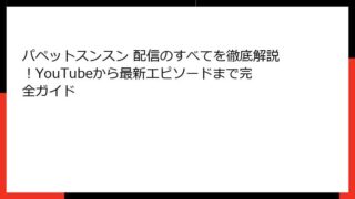 パペットスンスン 配信の魅力に迫る!基本情報と人気の秘密 パペットスンスンとは?可愛らしいパペットの世界観を徹底解説 パペットスンスンの基本コンセプトと誕生秘話 パペットスンスン 配信は、近年爆発的な人気を博している子供向けエンターテイメン...