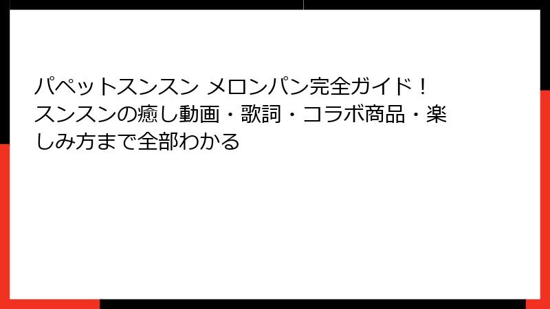- パペットスンスン メロンパンをもっと楽しむ方法とファンおすすめの楽しみ方・今後の展望