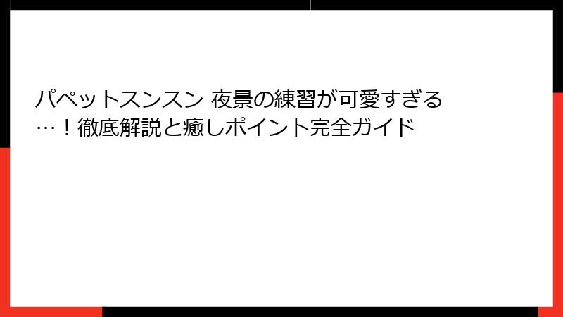 特に、「パペットスンスン 夜景の練習」というキーワードで検索してこの記事に辿り着いたあなたにぴったりの内容です。