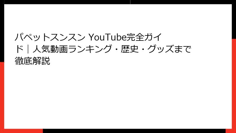 パペットスンスン YouTubeを初めて知る人でも、このセクションを読めばその魅力がすぐに理解できるはずです。