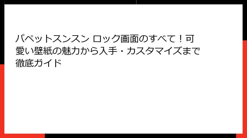 パペットスンスン ロック画面のすべて!可愛い壁紙の魅力から入手・カスタマイズまで徹底ガイド