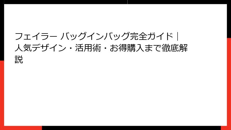 このガイドで、フェイラー バッグインバッグの実践が容易に。