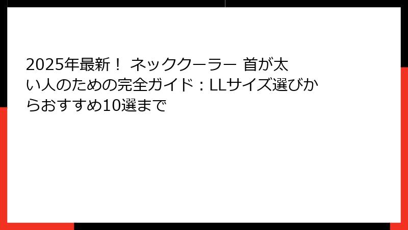 2025年最新! ネッククーラー 首が太い人のための完全ガイド:LLサイズ選びからおすすめ10選まで