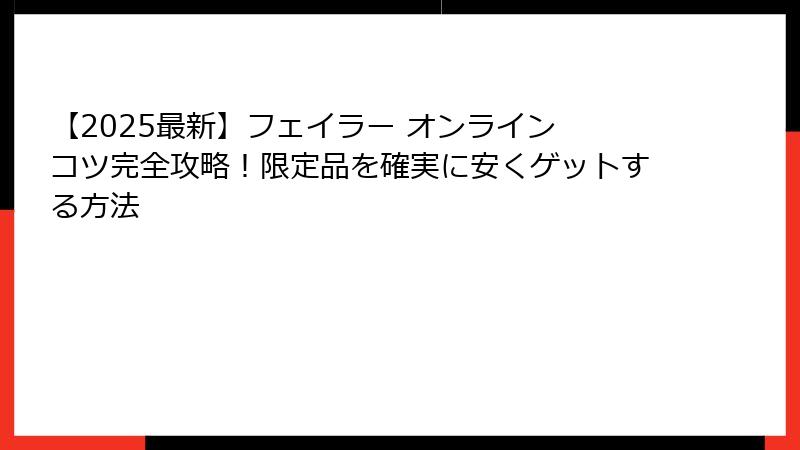 - 限定コラボ商品をゲットするフェイラーオンライン購入の高度なコツ – 抽選販売と即売品の攻略法