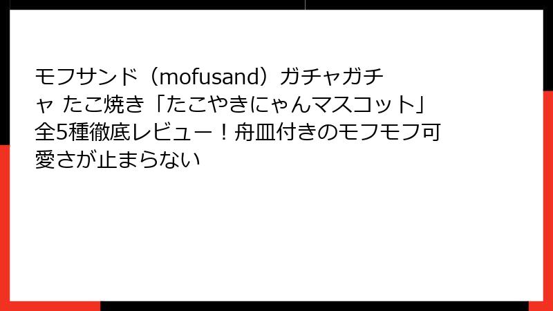 - まとめ:モフサンド ガチャガチャ たこ焼き「たこやきにゃんマスコット」は今すぐ集めるべき可愛い逸品!