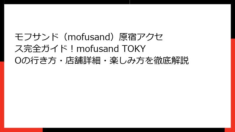 - モフサンド 原宿 アクセス方法の完全ガイド