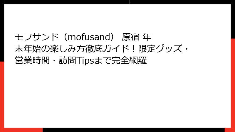 モフサンド(mofusand) 原宿 年末年始のガイドをまとめ、読者の行動を促します。