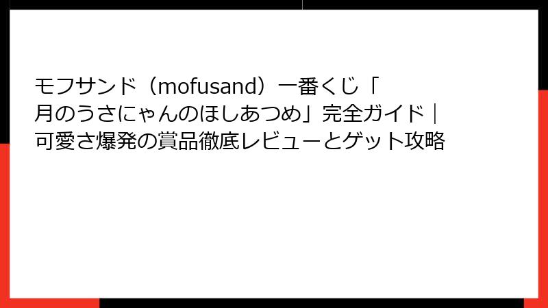 - 発売日・取扱店舗・オンライン購入ガイド! モフサンド一番くじを確実にゲットする方法