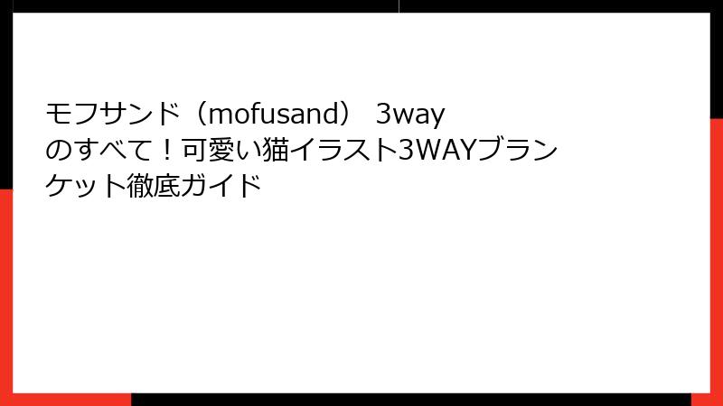特に、キーワードとなる「モフサンド(mofusand) 3way」グッズに焦点を当てて、その魅力や日常での活用方法を詳しくご紹介します。
