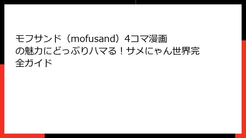 この段落では、モフサンド4コマ漫画の全体像からその人気の秘密まで、詳細に解説していきます。