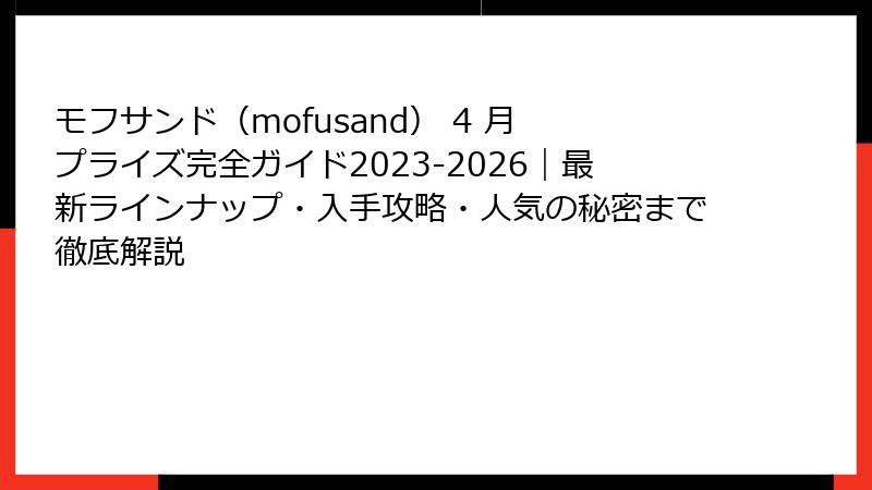 特に、モフサンド 4 月 プライズの位置づけを明確にし、その魅力に迫ります。