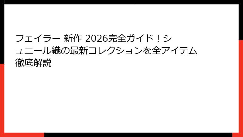 フェイラー 新作 2026を手に入れたら、どのように活用するのがベストか。