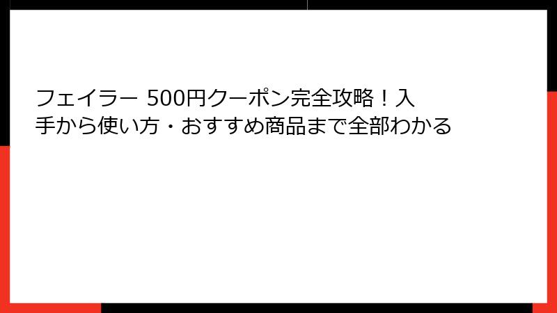 - フェイラー500円クーポンの使い方と注意点|有効活用で最大限のお得を