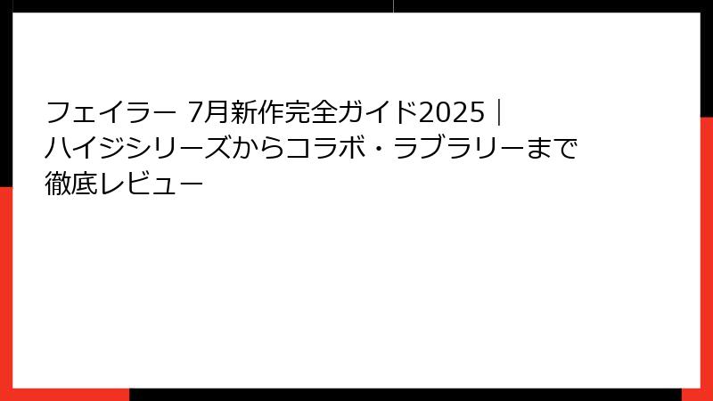 - フェイラーとは?7月新作の魅力と全体像を紹介