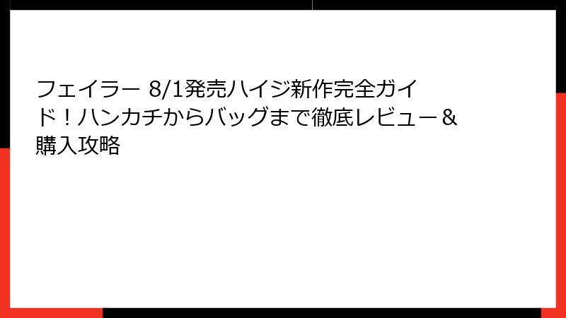 この記事では、フェイラー 8/1発売の背景から、今年の注目ポイントまでを徹底的に解説していきます。