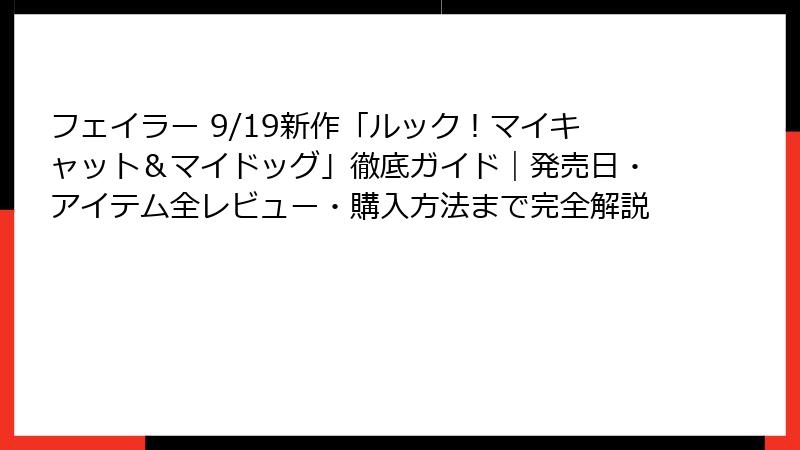 - ルック!マイキャット徹底レビュー – 9/19発売の猫モチーフアイテム全紹介と使いこなし術