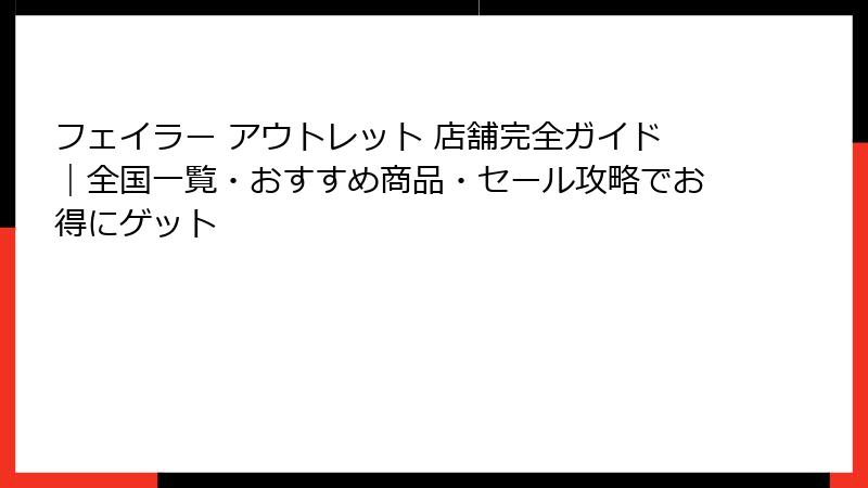 フェイラー アウトレット 店舗完全ガイド|全国一覧・おすすめ商品・セール攻略でお得にゲット