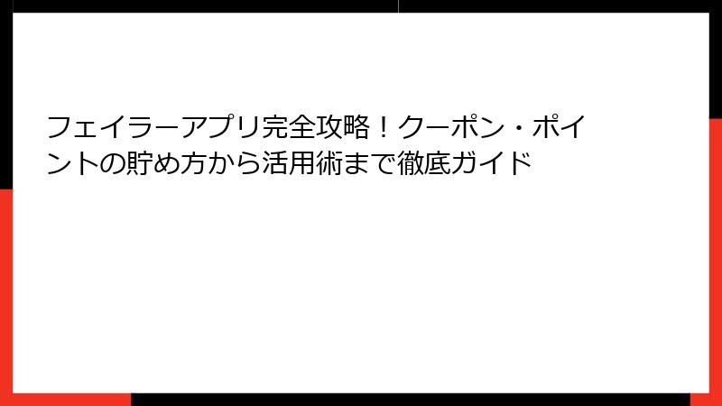 フェイラーアプリ完全攻略!クーポン・ポイントの貯め方から活用術まで徹底ガイド