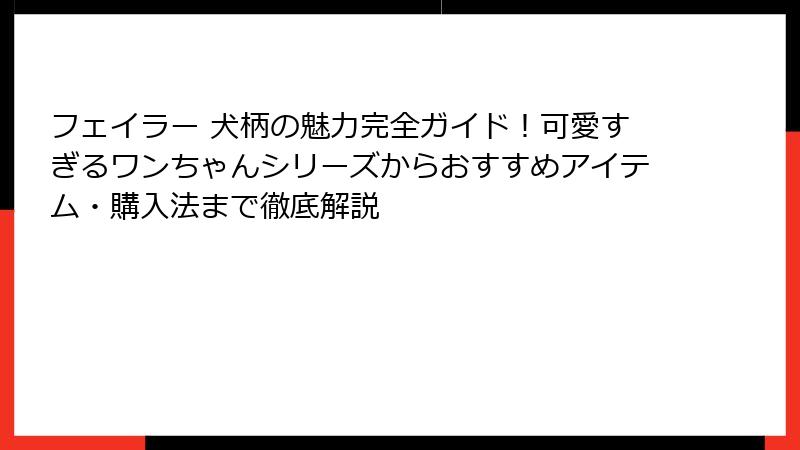 1. フェイラー犬柄商品の全体像とカテゴリの分類