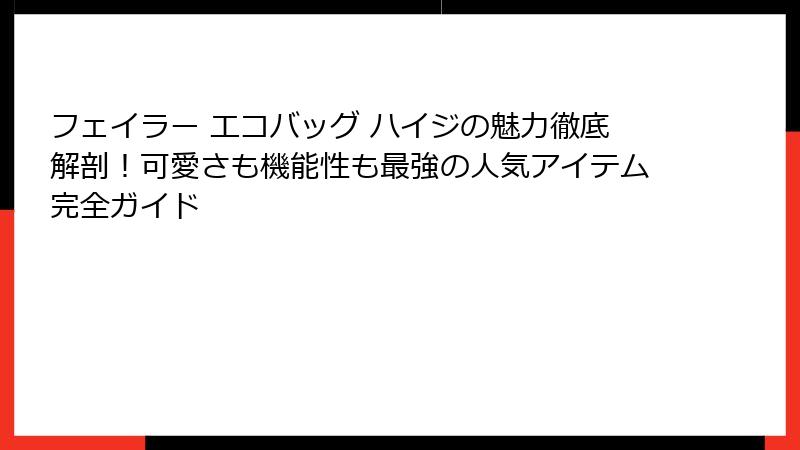 フェイラー エコバッグ ハイジの魅力徹底解剖!可愛さも機能性も最強の人気アイテム完全ガイド
