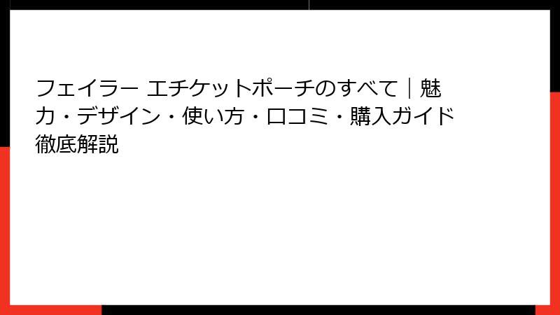フェイラー エチケットポーチのすべて|魅力・デザイン・使い方・口コミ・購入ガイド徹底解説
