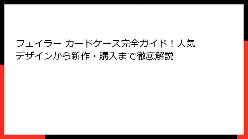 このTipsで、フェイラー カードケースの活用を締めくくります。