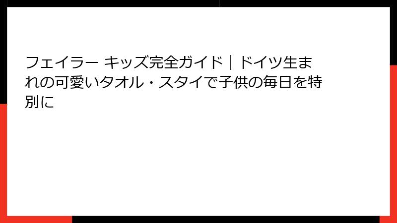 この記事では、フェイラー キッズの基本から魅力までを詳しく掘り下げていきます。
