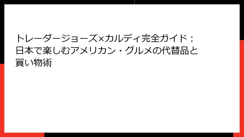 この記事では、トレーダージョーズの魅力を紐解き、カルディで手に入る代替品や楽しみ方を徹底解説。