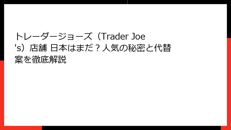 特に日本では、「トレーダージョーズ 店舗 日本」というキーワードが検索されるほど、熱い注目を集めています。