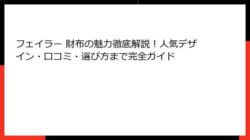 - フェイラー 財布の口コミと実際の使い心地 – メリット・デメリット分析