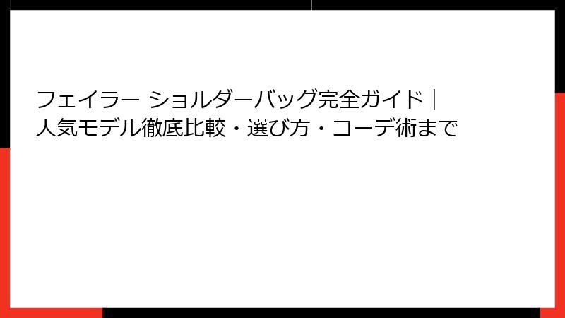 この形式で、フェイラー ショルダーバッグの疑問を網羅します。
