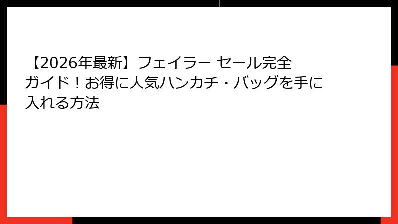 【2026年最新】フェイラー セール完全ガイド!お得に人気ハンカチ・バッグを手に入れる方法