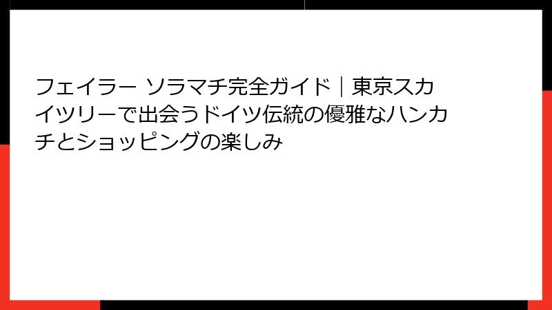 1. フェイラーとソラマチの魅力的な組み合わせ – 東京の下町で出会うドイツの優雅な世界