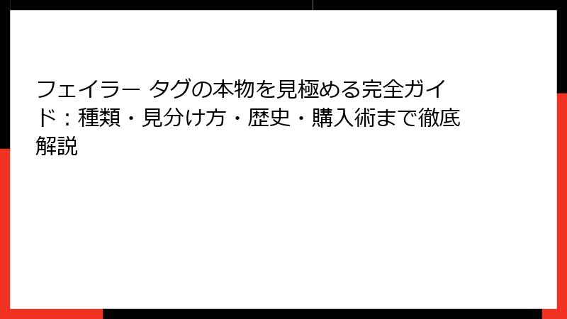 - フェイラー タグで本物と偽物を確実に見分ける方法:実践的なチェックポイント