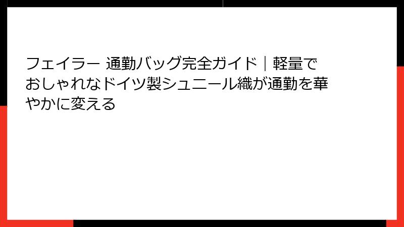 ドイツ生まれの伝統あるブランド、フェイラーが生み出す通勤バッグは、ただの持ち運びツールではなく、生活を豊かにするパートナーとして多くの支持を集めています。