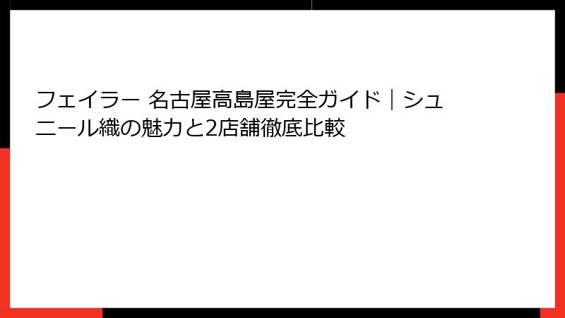 今日は、ドイツ生まれの伝統的なシュニール織ブランドであるフェイラーが、名古屋の中心地である名古屋高島屋でどのように輝いているのかを、徹底的に掘り下げてお届けします。