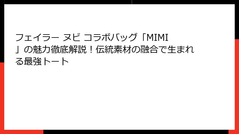 1. フェイラーとヌビの出会い:注目のコラボバッグ「MIMI」の概要と魅力