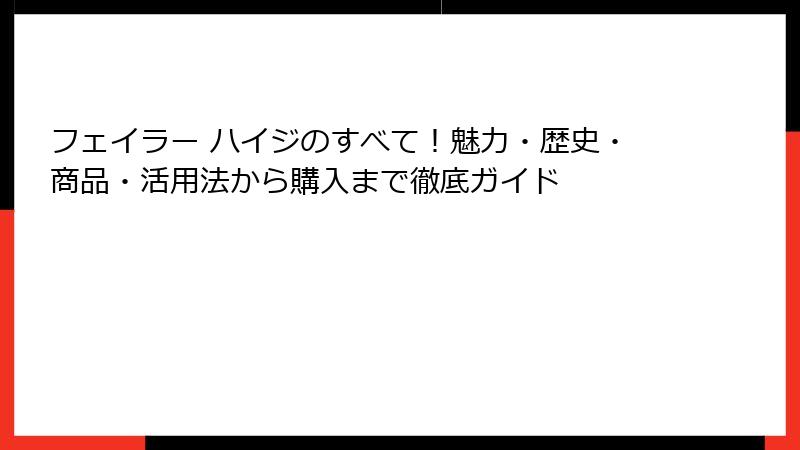 - フェイラー ハイジをおすすめする理由:購入ガイドとまとめ