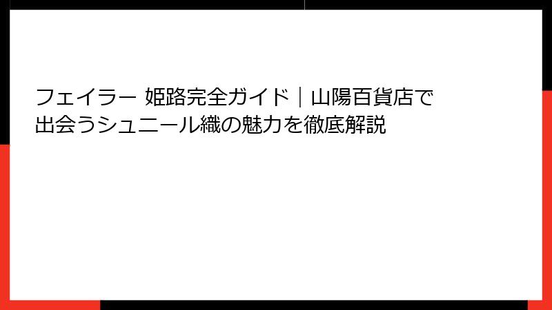 このまとめで、フェイラー 姫路のすべてを長大に振り返りました。