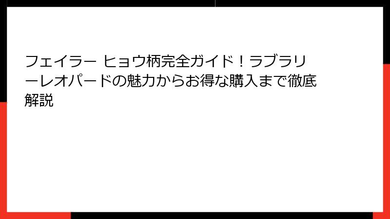1. フェイラー ヒョウ柄の記事まとめ:これまでのポイントを振り返る