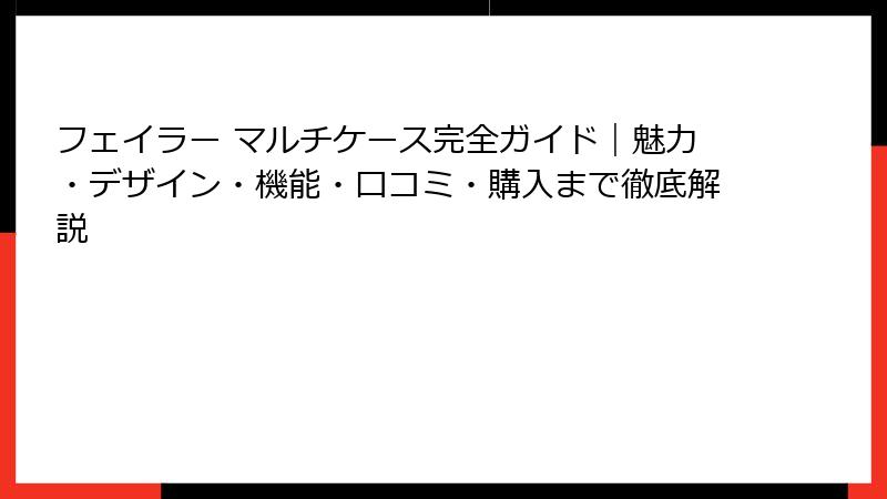 - フェイラー マルチケースのおすすめ購入ガイドとまとめ – あなたにぴったりの1つを見つけよう